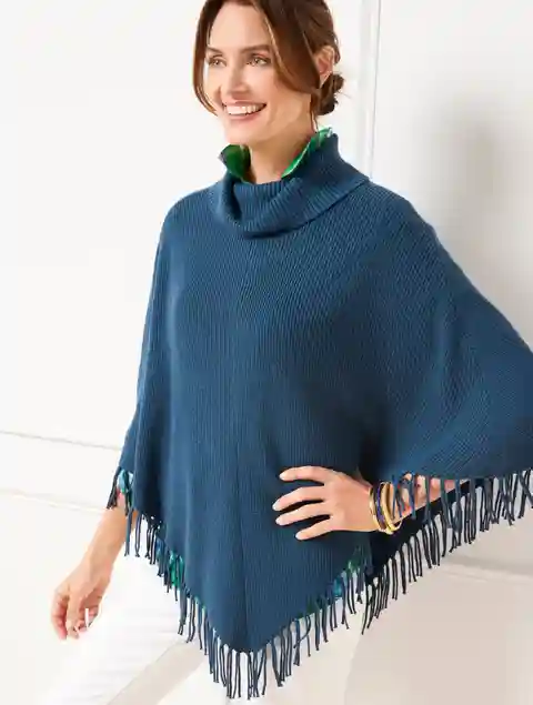Plus Exclusive Fringe Knit Poncho - Teal Ocean - 1X Talbots