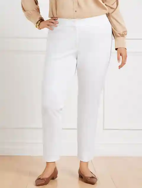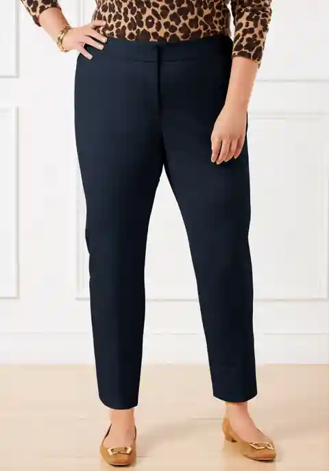 Plus Exclusive Talbots Chatham Slim Ankle. Cotton bi-stretch gives you both comfort and versatility. Also offered in Plus Exclusive Talbots Chatham Fly Front Ankle Pants - Solid - Curvy Fit. Features Slim leg Hits Mid Rise Ankle length Fly front with hook & bar Back welt pockets Imported Fit: Inseam...more