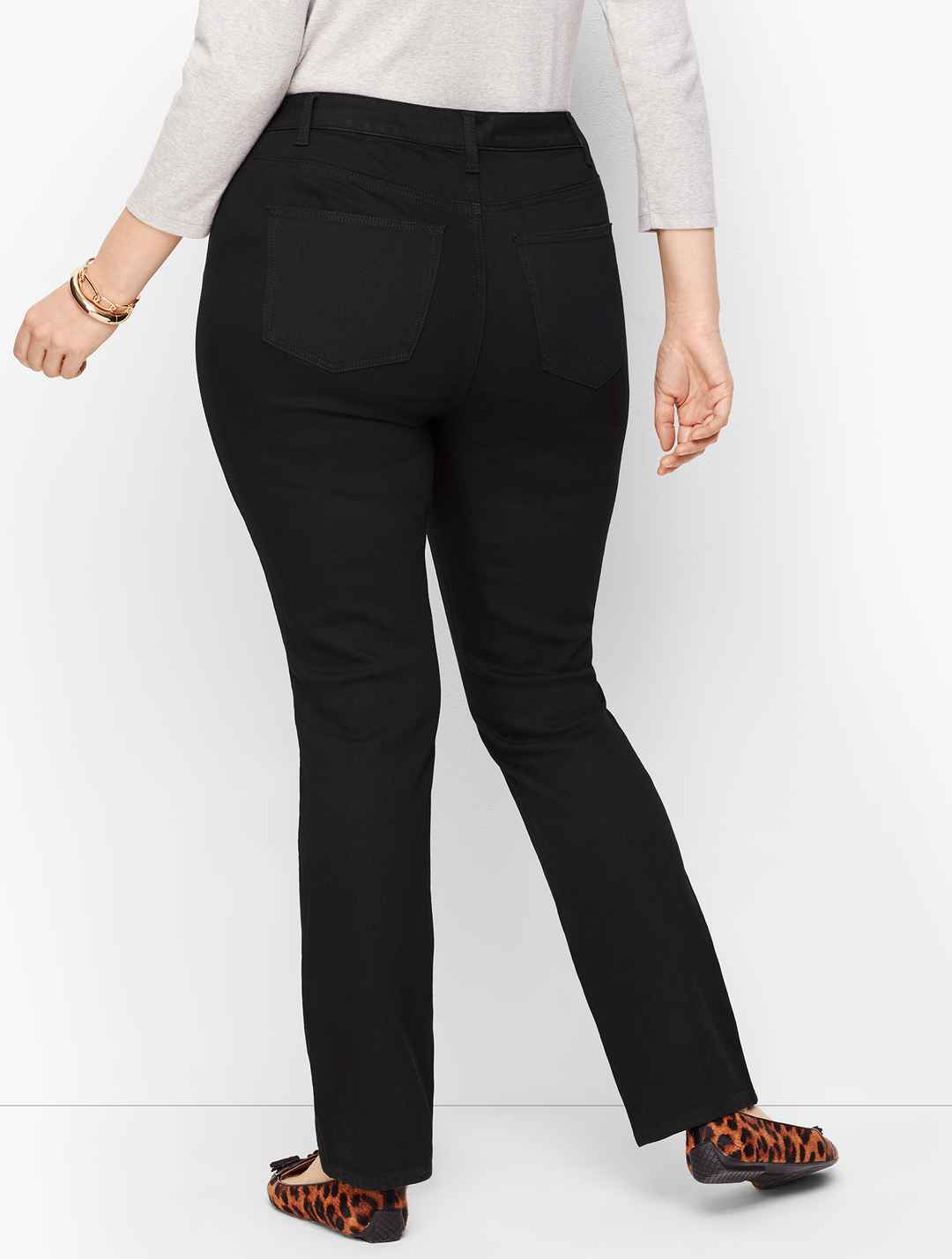 A classic silhouette with a straight fit from knee to hem. This updated style is exactly what your closet's been missing! The comfortable stretch denim, flattering high rise and exclusive slimming panel work to hold you in, smooth you out and contour curves for a flawless fit. Now in a new, versatil...more
