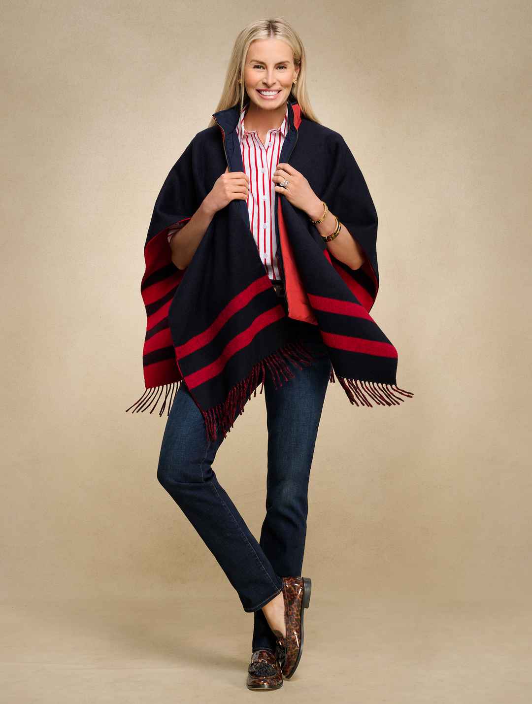 Two looks. One cozy wrap. In a cozy wool blend with two sides to choose from. Quite possibly the most luxurious top layer you'll ever own. Features Ruana Reversible Imported Fit: 28" x 40" Material: 70% Polyester, 30% Wool Care: Dry Clean | Reversible Double Face Ruana - Toasted Coconut/Ivory - 001 ...more