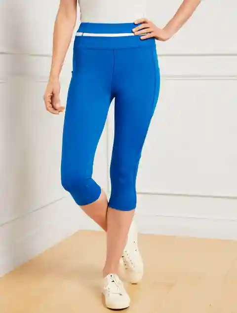Part of T by Talbots, our most comfortable collection ever! Our looks good, feels great active pedal pusher leggings in the perfect cropped length. Breathable, moisture-wicking performance interlock fabric keeps you cool and dry. Finished with angled slip pockets and eye-catching colorblock . Featur...more
