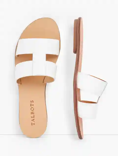 Hannah Vachetta Leather Slides - White - 6M Talbots
