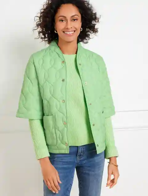Misses - Short Sleeve Quilted Puffer Jacket - Pistachio Green - XS Talbots
