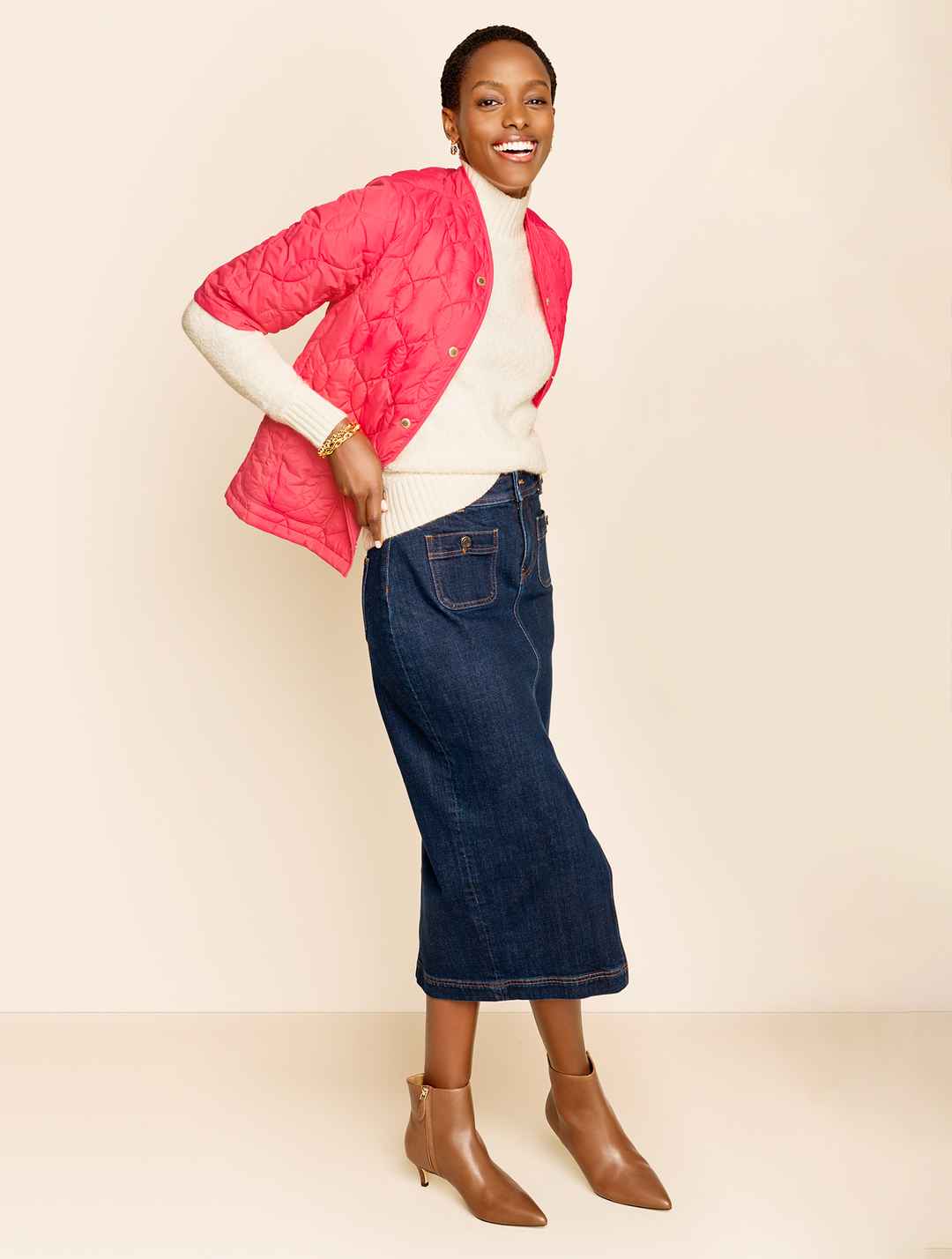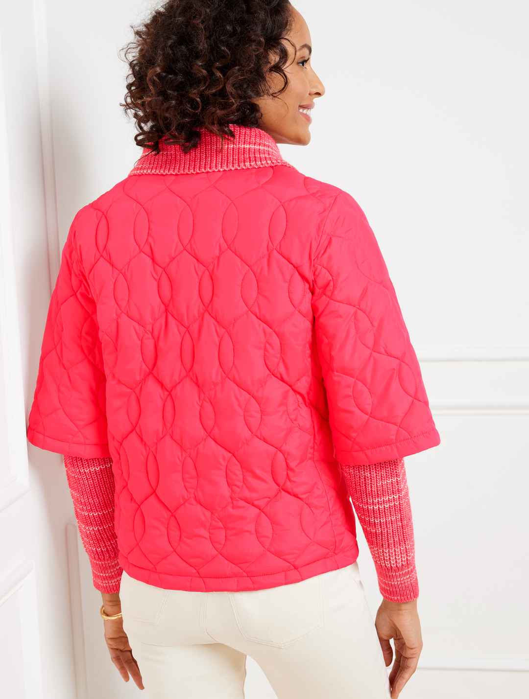 A gorgeous quilted finish adds just-right warmth to our modern, short sleeve puffer jacket. Crafted with patch pockets for your on-the-go essentials. Easygoing and ready for cool weather layering. Features Short Sleeve Hits Above Hip Snap closure Patch pockets Lined Imported Fit: Misses: 23"; Petite...more