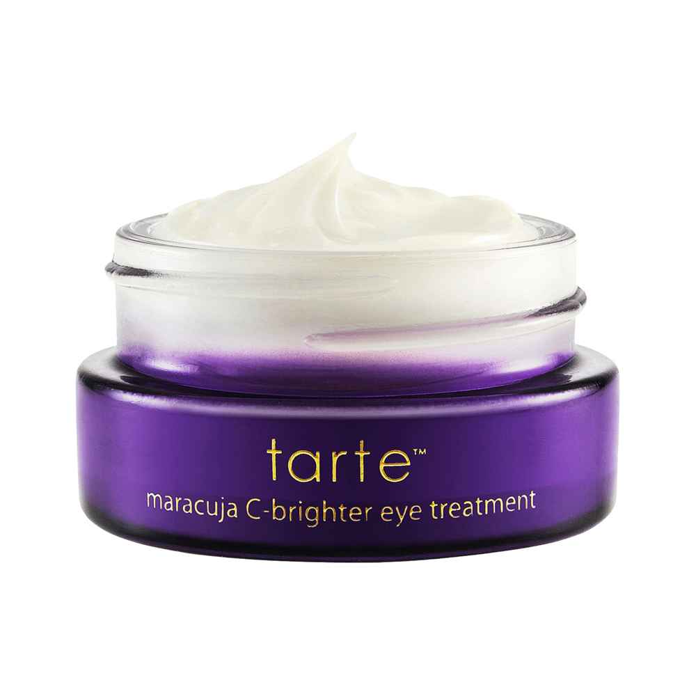 Tarte's Maracuja C Brighter Eye Treatment is a rich (but not greasy) daily, vegan eye cream that smooths, hydrates, instantly brightens and fights signs of aging.What the product does: Makes you look instantly refreshed while providing skin superfoods that give long-term benefits.