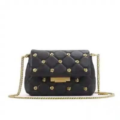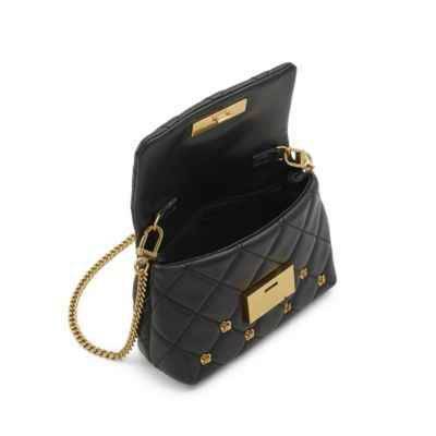 Studded gold flower details make this mini leather crossbody a modern staple. From the push lock closure to the removable chain strap and the trend-right quilted padding, it's a new school classic. | Ted Baker Ginn Cross Body, Black, Small