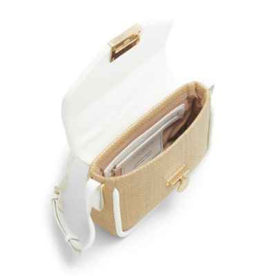 Our adorable mini crossbody will fit your phone, lipstick, and a couple more goodies. With a perfectly on-trend raffia material and a branded coin flip closure, all your outfits will sing. Plus you can stash your cards in the convenient back slip pocket. | Ted Baker Sadiemaymini Crossbody, White