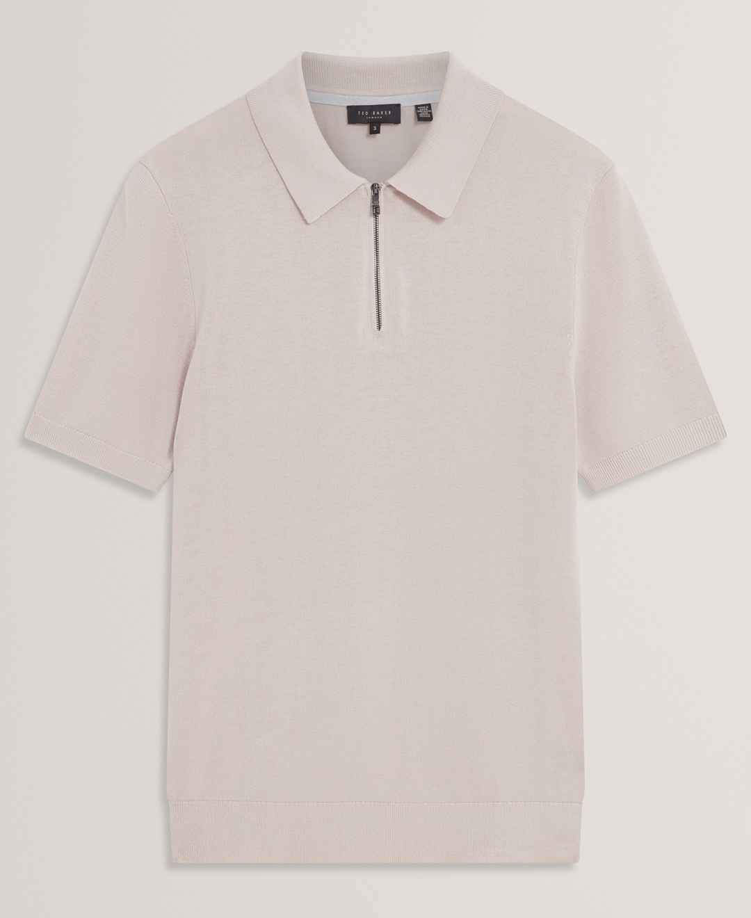 Modern polish meets classic style in this Ted Baker short-sleeve polo, featuring a zip-neck fastening and sleek collar. Ribbed trims and a wool-silk blend knit deliver a refined look with all-day comfort.