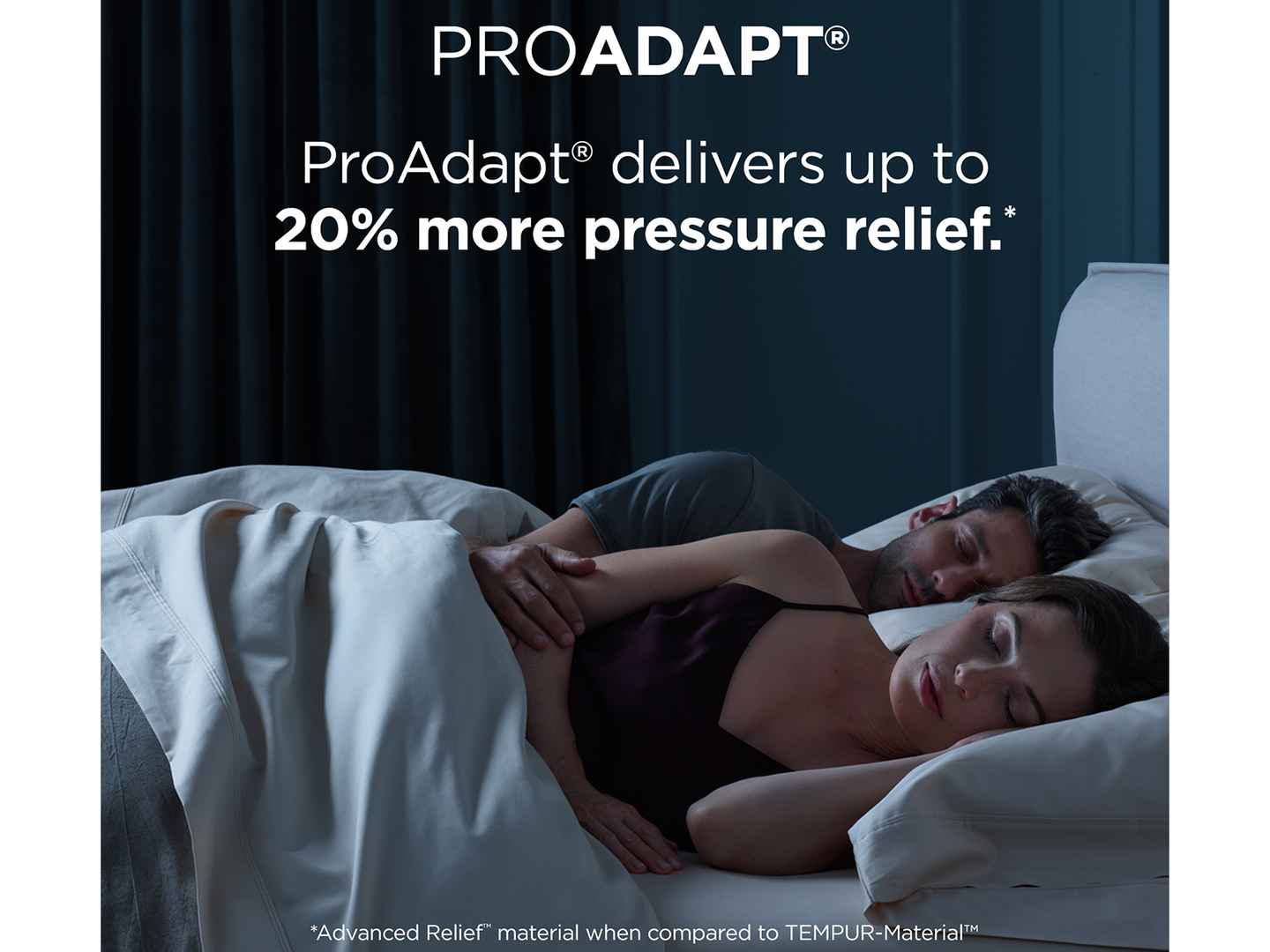 Nights of cradling relief and extraordinary sleep are yours on the TEMPUR ProAdapt Medium Mattress. A layer of one of a kind TEMPUR Material provides advanced pressure relief to help reduce aches and pains while limiting disruptions from movement by partners kids or pets. This ventilated material al...more