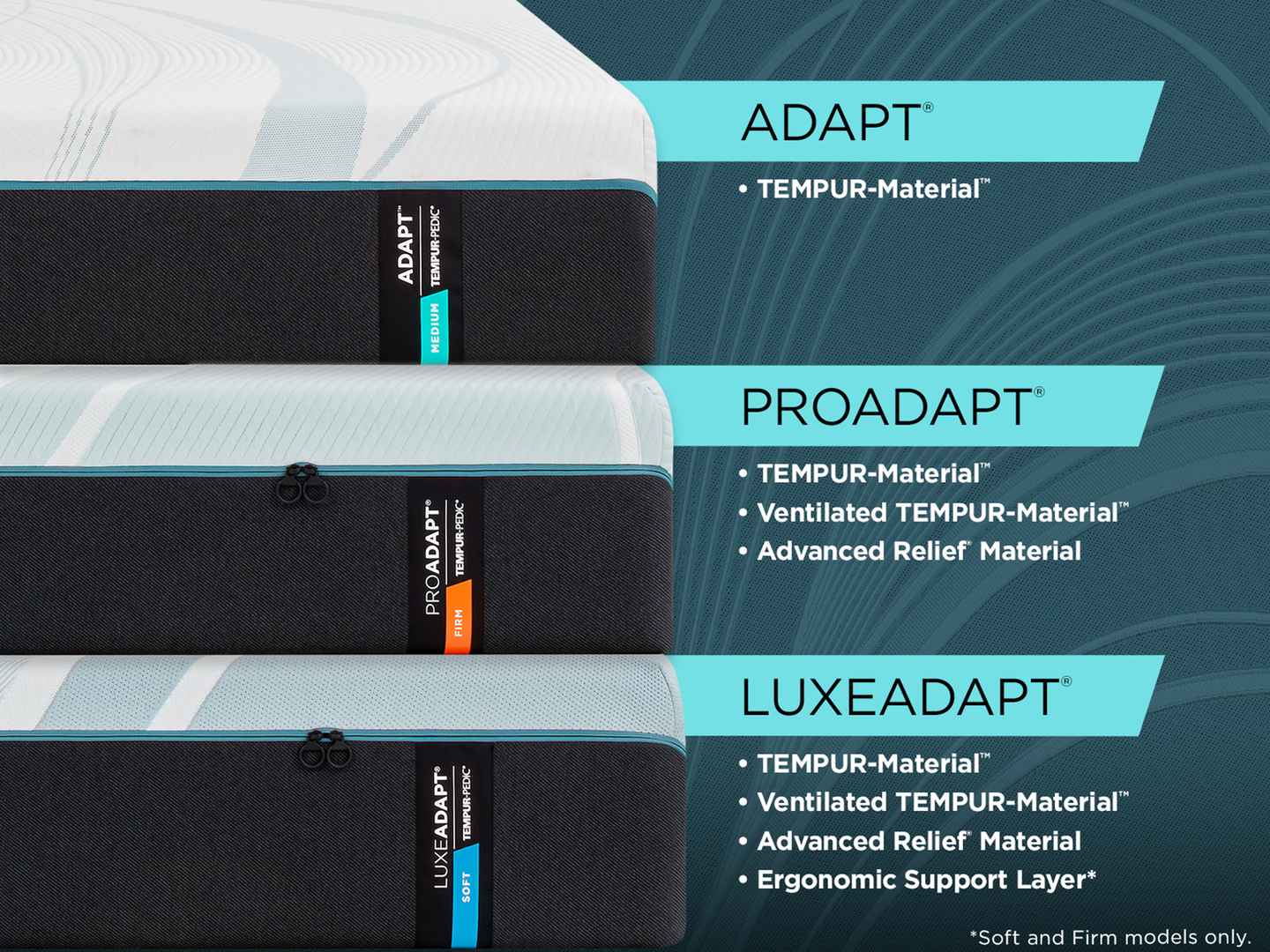 More all over relief more relief all night get the sleep you deserve every night with the TEMPUR ProAdapt Firm Mattress. Adaptable TEMPUR Material helps reduce aches and pains by providing advanced pressure relief. This ventilated layer also promotes deeper uninterrupted sleep by absorbing motion wh...more