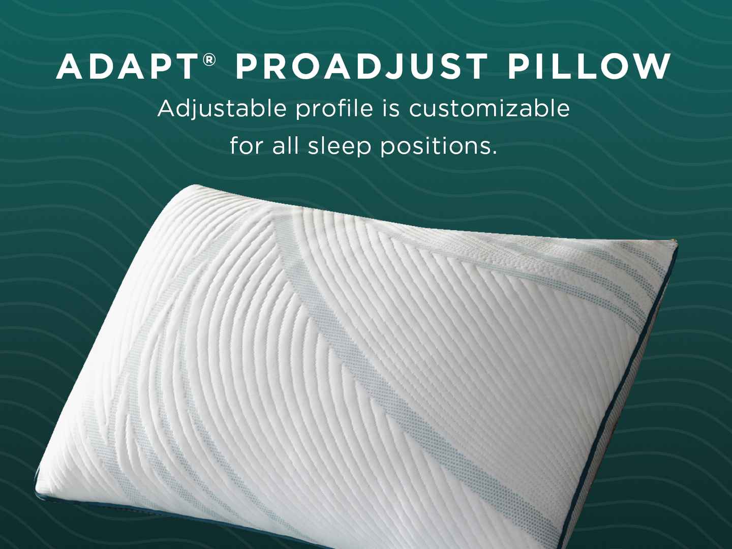 Specifically designed to complement the Adapt collection mattresses the TEMPUR Adapt Pro Adjustable Pillow has a 6.5 medium profile that can be continuously adjusted to be comfortable for any kind of sleeper. An exclusive blend of TEMPUR Material precisely adapts to your head neck and shoulders for ...more
