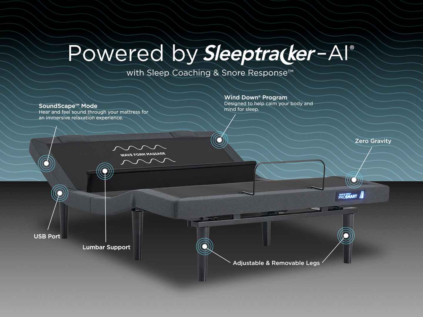 The all new TEMPUR Ergo ProSmart Base powered by Sleeptracker AI gives you an innovative sleep solution that can detect snoring and automatically respond which may help reduce it so you don't have to be disturbed during the night. The innovative base also includes features to help you relax through ...more