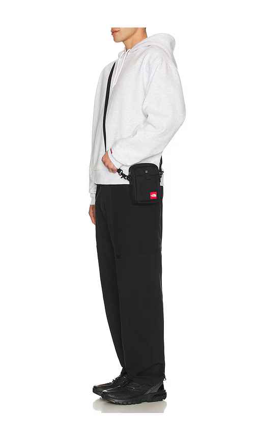 The North Face Red Box Small Carry Bag in Black. The North Face Red Box Small Carry Bag in Black. Canvas exterior and interior. Wrap around zip closure. One main compartment. One interior slip pocket. One exterior pouch pocket. Measures approx 4 W x 6.5 H x 1 D Shoulder strap with a 10 drop. TACF-MY...more