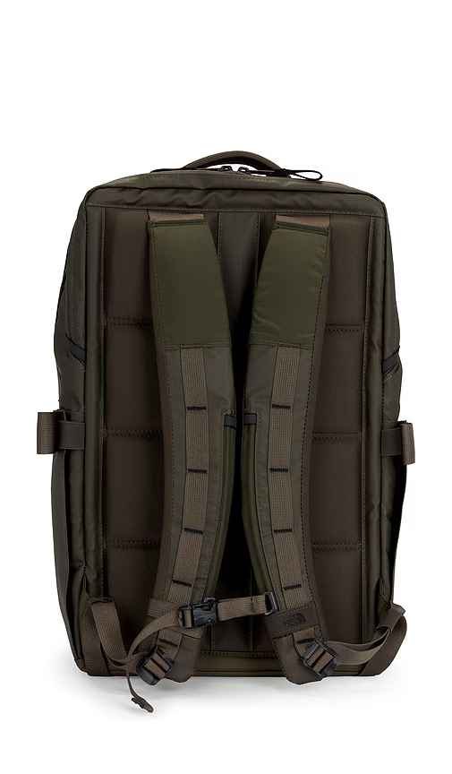 The North Face Base Camp Voyager Daypack in Green. The North Face Base Camp Voyager Daypack in Green. Water and abrasion-resistant ripstop exterior with twill lining. Made in Vietnam. Spacious central compartment. Padded, fleece-lined 16'' laptop compartment. External, secure-zip pocket has organiza...more
