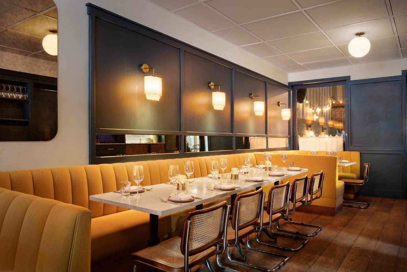 The Orchard Townhouse is a brasserie-style neighborhood restaurant featuring classic American dishes.