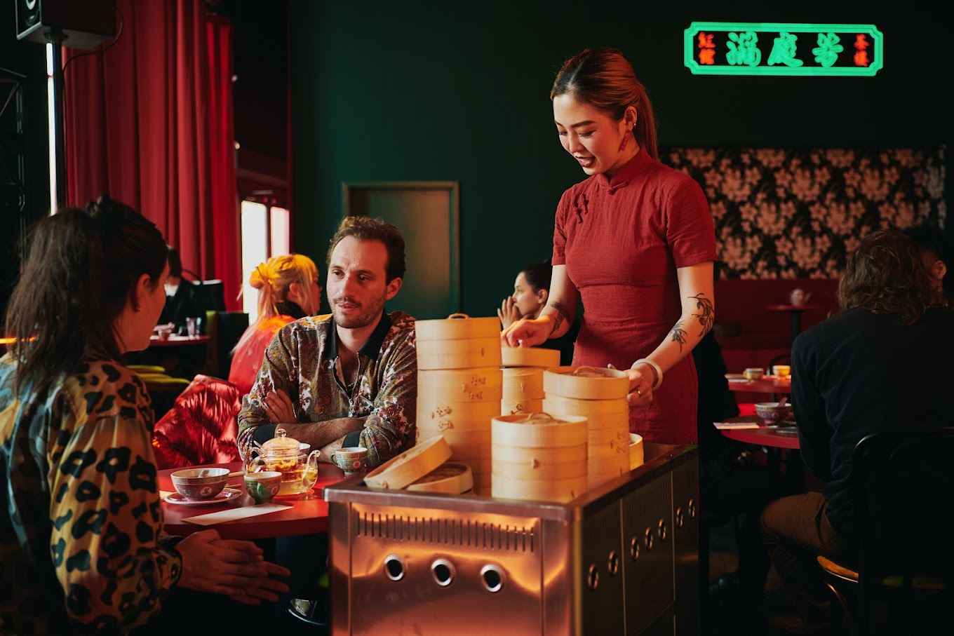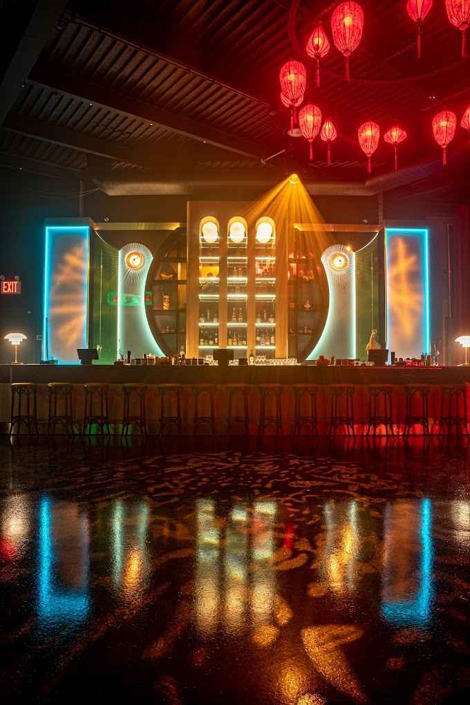 The Red Pavilion 红馆 comes alive as the sun sets, transforming into a smoky neon-lit cabaret venue and nightclub after dark. Bathed in the glow of red lanterns, our nocturnal Shangri-la evokes the seductive style of Wong Kar Wai, infused with a hint of Lynchian noir. The Red Pavil... more