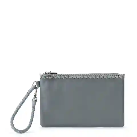 The Sak Vita Wristlet Bag | Leather - Dusty Blue Grey