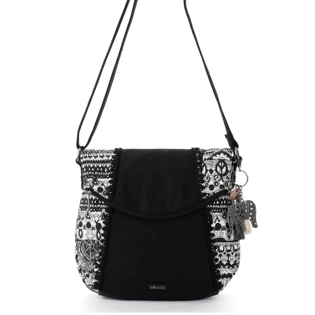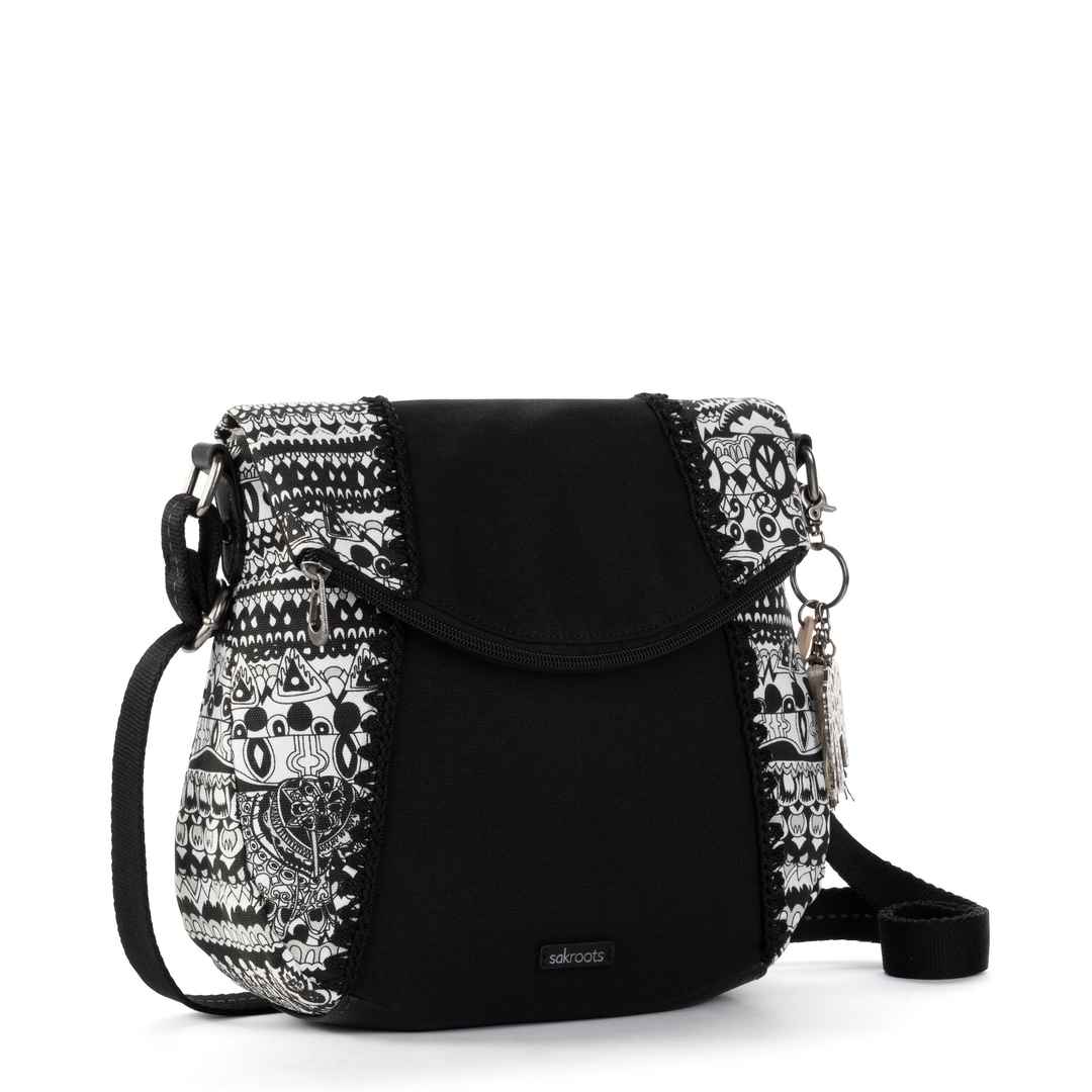 Sakroots Foldover Crossbody Bag | Eco Twill - Black Tonal Spirit Desert