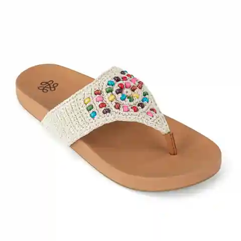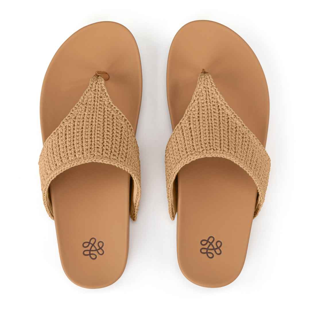 Perfect with warm-weather looks: the classic Everly sandal. Set atop a padded footbed, the versatile, hand-crocheted upper is made from ethically collected, ocean-bound plastics. A monogrammed rubber outsole grounds this pedi-ready style, which pairs effortlessly with dresses, denim, swimwear and mo...more