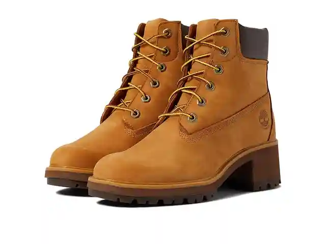 Timberland Kinsley 6 Waterproof Boot feature a classic lace-up style boot with zebra print trim. Available in two color options. Upper made from leather and textile material. Lining and insole made out of textile material. Synthetic outsole. Imported. Measurements: Heel Height: 2 in Weight: 1 lb 2 o...more