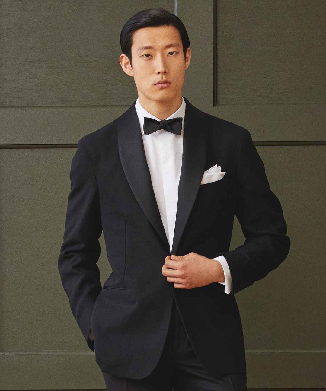An essential for the sharp dresser, our luxurious Tuxedo Jacket is crafted in soft, breathable black linen from Italy. It's a chic update on everything you love about the classic: modern, impeccable tailoring with a slim, tapered fit and a natural shoulder. Premium details include a satin shawl-styl...more