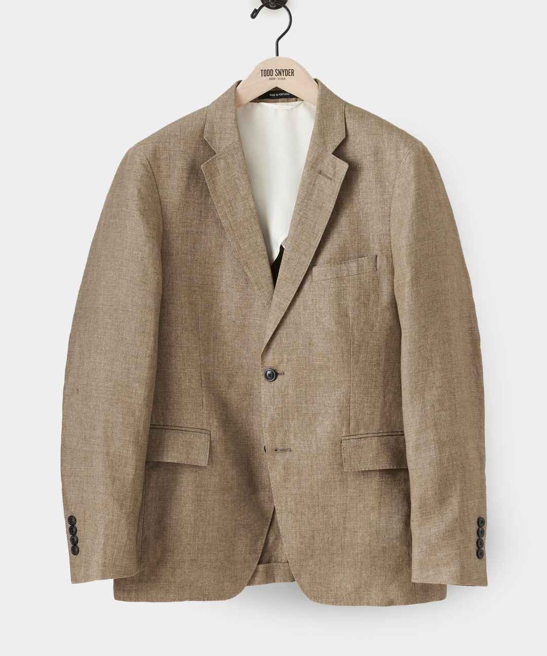 Our Sutton Suit Jacket offers a spin on a tailored sports coat; if you're looking for a suit that doesn't feel like a suit, you've found it. The fabric a goes-with-anything tan linen is from Italy's renowned Subalpino Mill. This two-button jacket features design details like a partial lightweight ...more