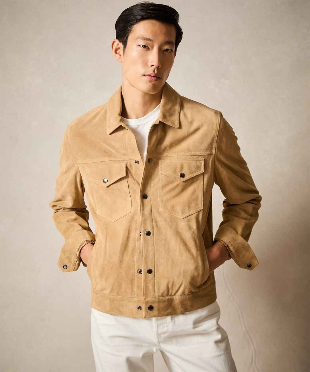 Italian Suede Snap Dylan Jacket in Cappuccino