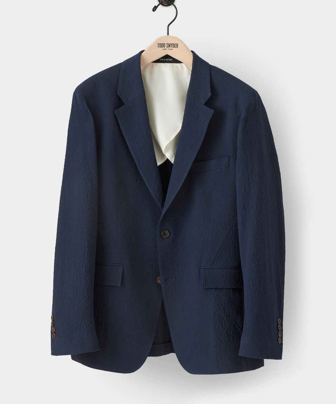Our Sutton Suit Jacket offers a spin on a tailored sports coat; if you're looking for a suit that doesn't feel like a suit, you've found it. The fabric a chic-but-versatile navy seersucker with a subtle texture is from Italy's renowned Subalpino Mill. This two-button jacket features design details...more