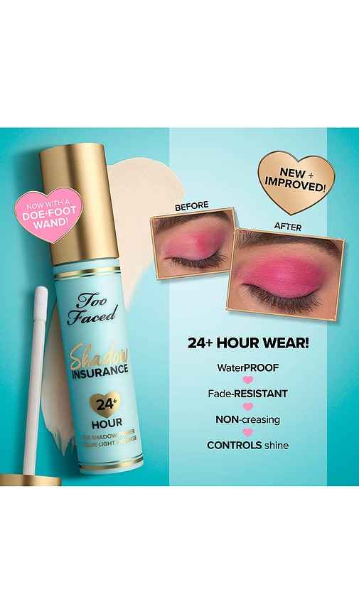 Too Faced Shadow Insurance 24-hour Eyeshadow Primer in White. Too Faced Shadow Insurance 24-hour Eyeshadow Primer in White. Too Faced's Shadow Insurance 24-Hour Eye Shadow Primer formula intensifies color and helps lock down eye shadow for 24+ hours of non-creasing, fade-resistant wear. This primer ...more