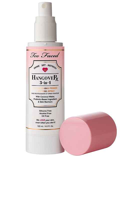 Too Faced Hangover 3-in-1 Replenishing Primer & Setting Spray in Beauty: NA. Too Faced Hangover 3-in-1 Replenishing Primer & Setting Spray in Beauty: NA. This weightless, super hydrating, multitasking mist can be used as a primer before makeup, a setting spray to keep makeup in place all day, and a ...more