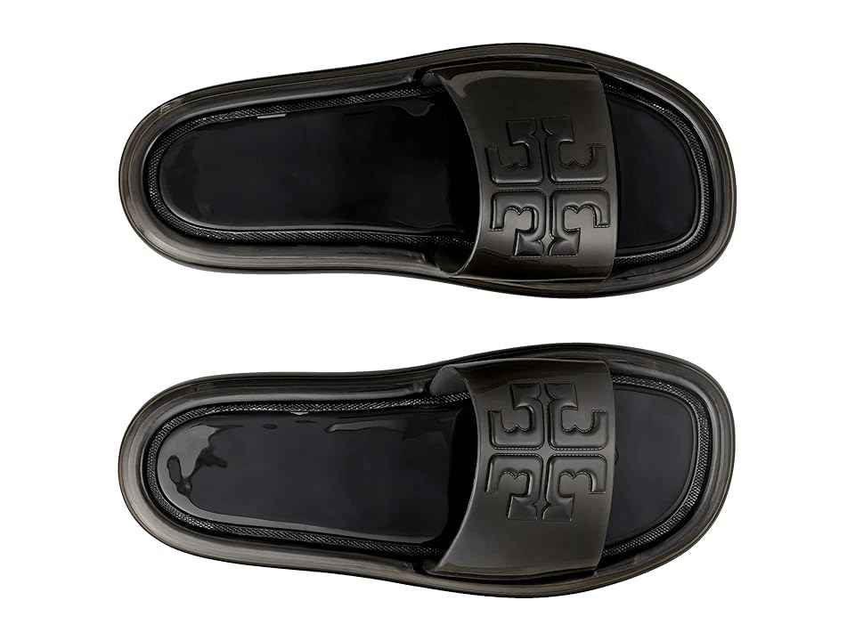 Take a step back in time with the Tory Burch Bubble Jelly, a TPU slide reminiscent the iconic 90s sandal. Open rounded toe and open back for easy on and off. Signature Double-T across strap. TPU lining and insole. Durable rubber sole. Imported.