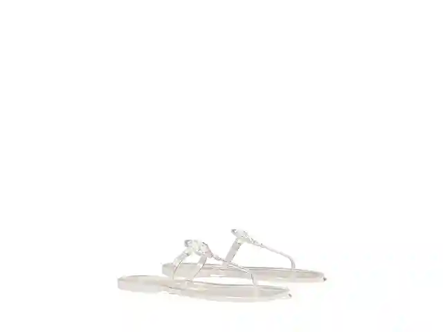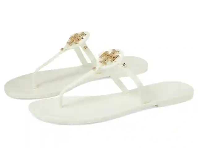Being casual doesn't mean you have to compromise on your style. Keep it cute with the Tory Burch Mini Miller Flat Thong. Open toe, thong sandal. Slip on design. Color block instep. Gold-tone hardware with brand logo engraved. Synthetic upper. Synthetic lining with synthetic footbed. Textured, synthe...more