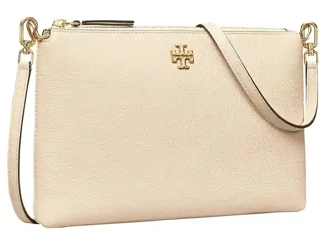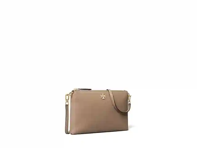 Create a pristine look with the simple and supple leather Tory Burch Kira Pebbled Wallet Crossbody bag featuring a detachable crossbody strap. Zip closure and signature double 'T' hardware at front. Lining has an interior slip pocket and four credit card slots. Imported. Measurements: Bottom Width: ...more
