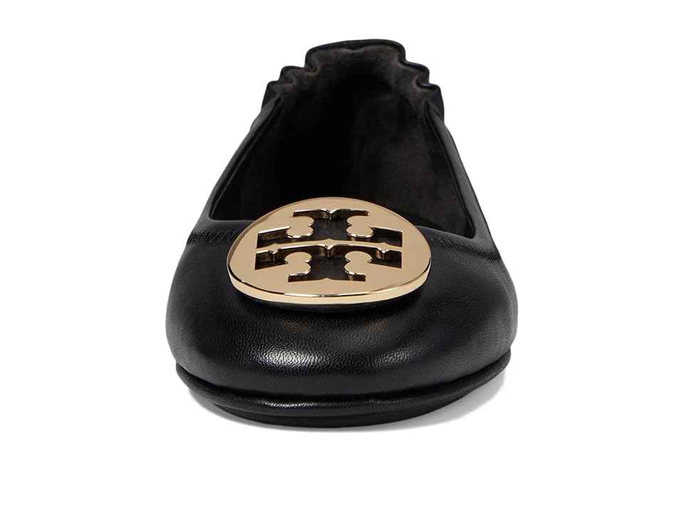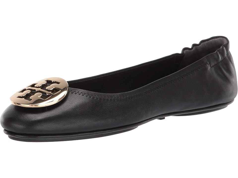Tory Burch Minnie Travel Ballet w/ Metal Logo (Perfect Black/Gold) Women's Shoes