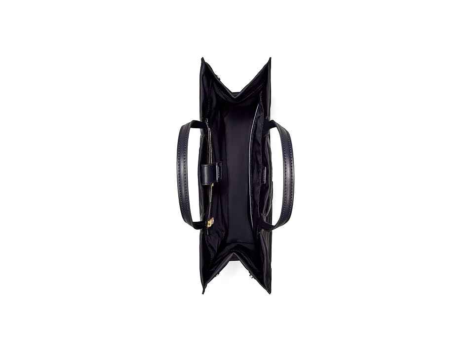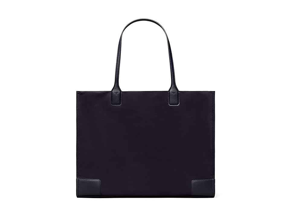 The primary materials that compose this product contain a minimum of 20 percent recycled content. The Tory Burch Ella Tote bag is perfect to keep your essentials handy and suitable to carry to work and parties. Recycled nylon construction with polyurethane trims. Magnetic and gusset snap closure. In...more