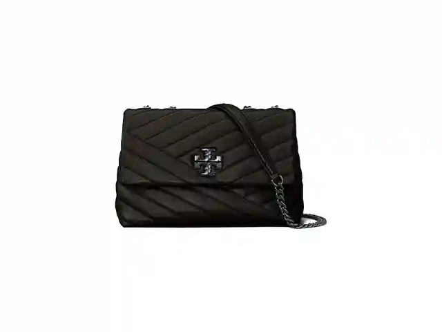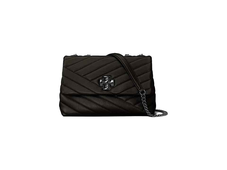 Home Tory Burch Tory Burch Kira Chevron Powder Coated Small Convertible Shoulder Bag (Black/Silver) Handbags