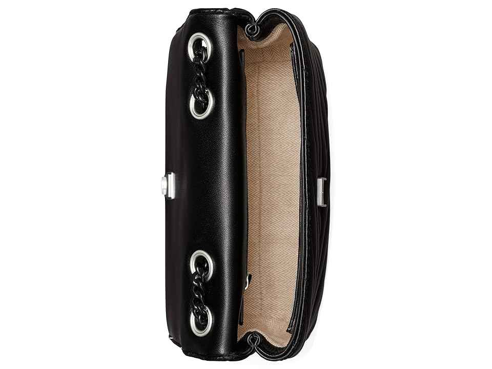 Tory Burch Kira Chevron Powder Coated Small Convertible Shoulder Bag (Black/Silver) Handbags