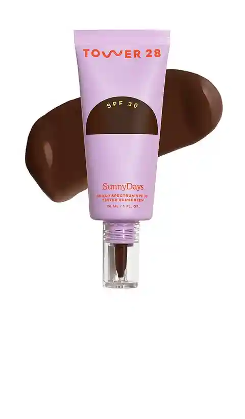 Tower 28 SunnyDays Tinted SPF in 65 Topanga. Tower 28 SunnyDays Tinted SPF in 65 Topanga. SunnyDays is a 2-in-1 mineral sunscreen foundation with SPF 30 that evens redness, protects from sun damage and blue light, and soothes UV-stressed skin while maintaining a natural finish so your real skin (fre...more