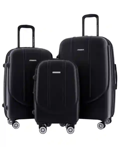 The Travelers Club 3 Piece set includes 28" Large check in suitcase, 24" Medium check in suitcase, and 20" Carry on luggage. It includes multi-directional double spinner wheels to provide 360 effortless mobility and ease on the travelers' Wrists.