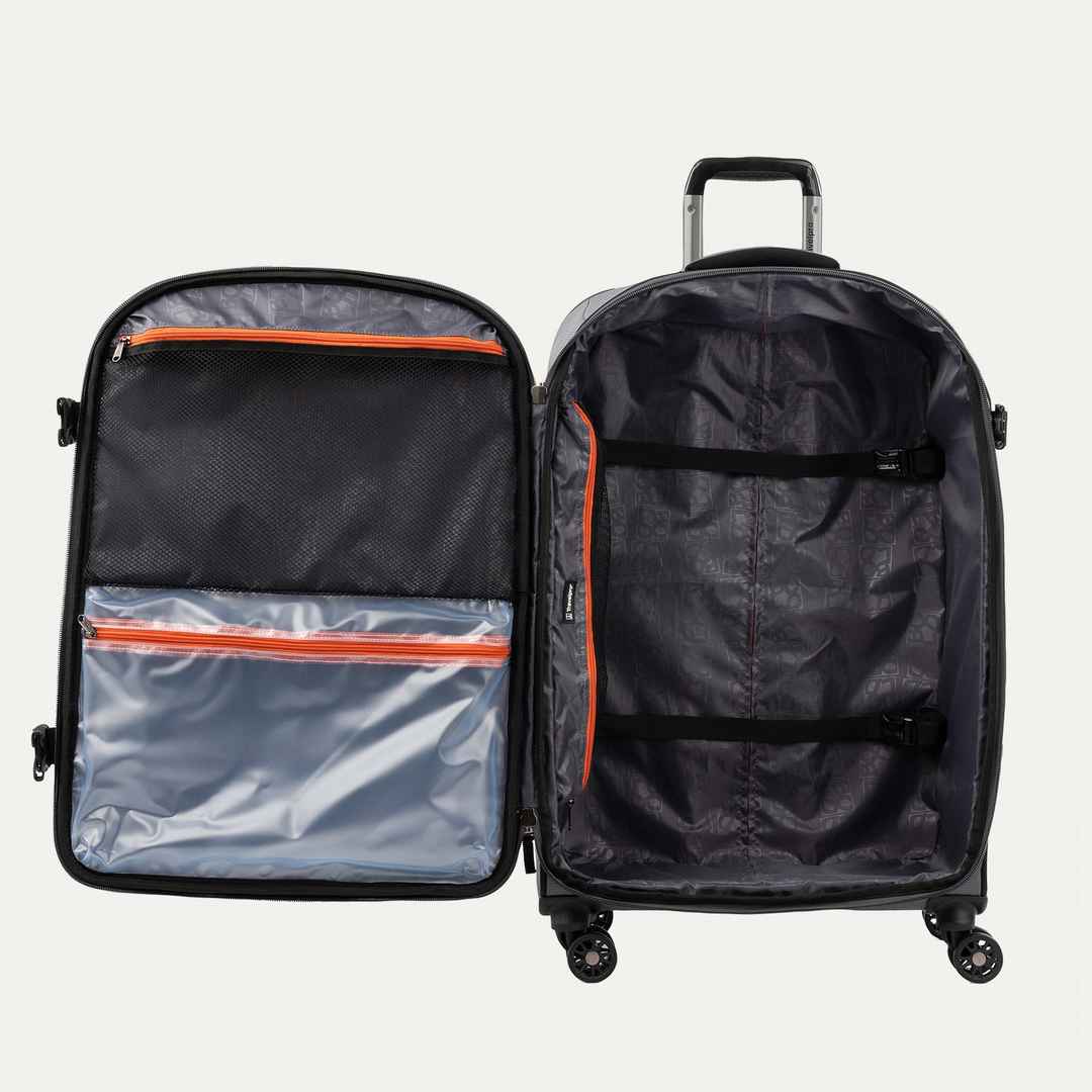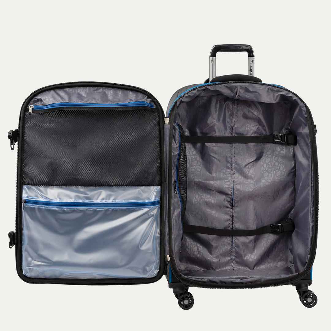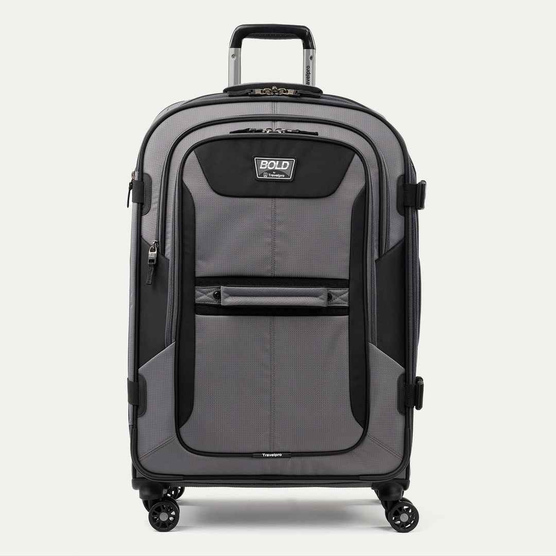 Pack it up, snap it down and hit the ground rolling! The Bold by Travelpro 26 Spinner is the tough-built, lightweight checked bag youve been seeking. Perfect for medium and longer adventures, this durable workhorse also includes a 2 zippered expansion option to boost packability. Organization featur...more