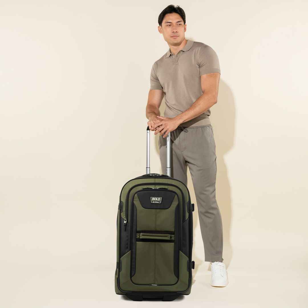 With the Bold by Travelpro 28 Expandable Rollaboard , youre ready to roll! Durable yet lightweight construction and a zippered 2 expansion option that boosts capacity make this the ideal checked bag for longer adventures. High-density polyester fabric is treated to resist moisture and stains, while ...more