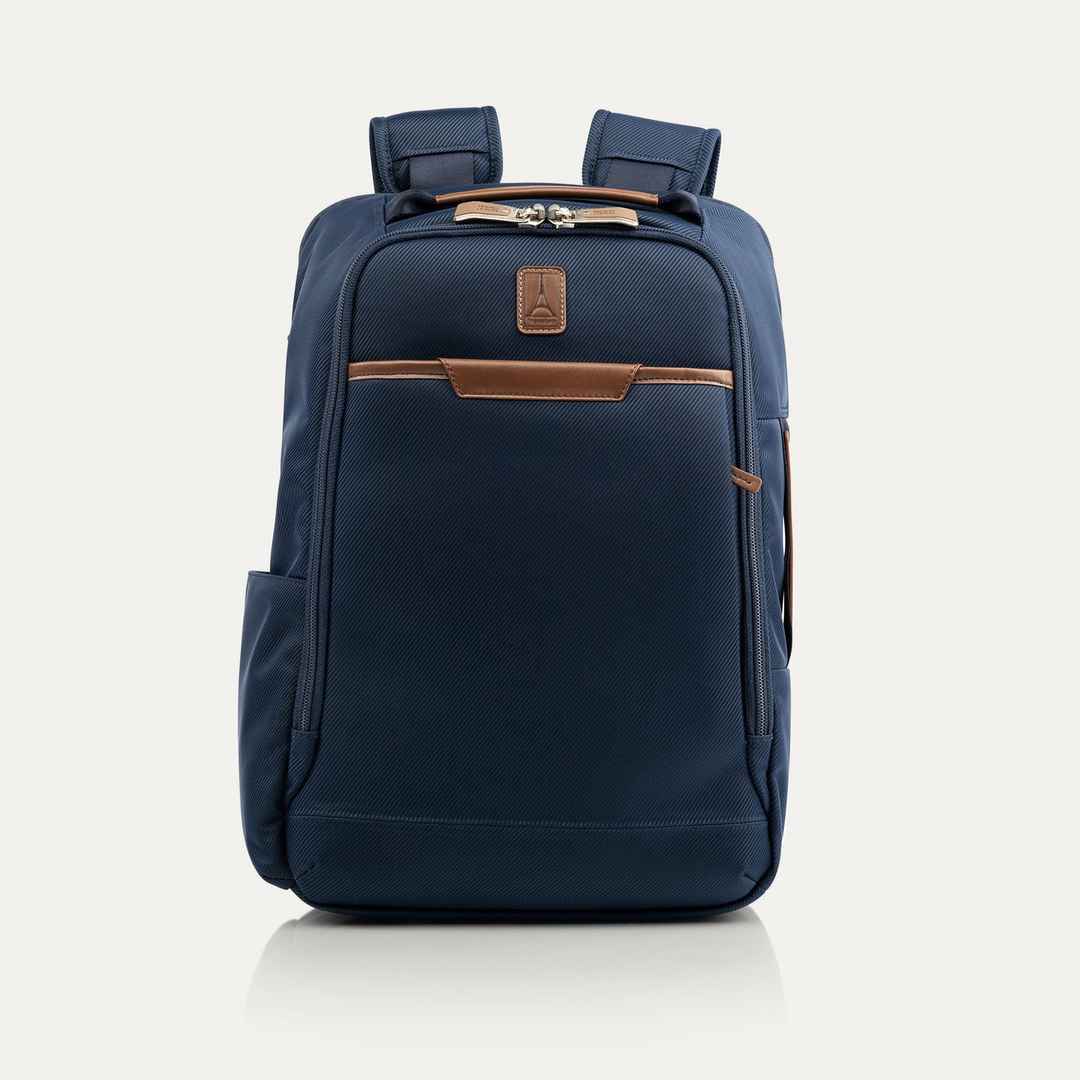 The Travelpro x Travel + Leisure Slim Backpack delivers big on organization in a sleek profile ideal for everyday use. Buttery soft, ultra-resilient fabric is treated to resist stains and abrasions, trimmed with genuine leather details and crafted into this slim backpack loaded with practical featur...more