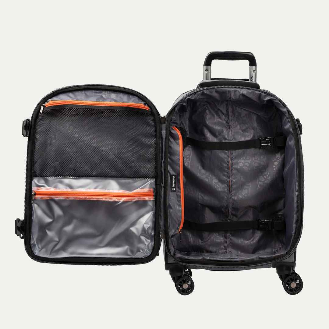This durable carry-on spinner is made for action and expansion! The tough but lightweight Bold by Travelpro 21 Spinner delivers big on features in a compact carry-on that meets size restrictions for most domestic airlines and boosts packing capacity with its 2 expansion option. Smart features inclu...more