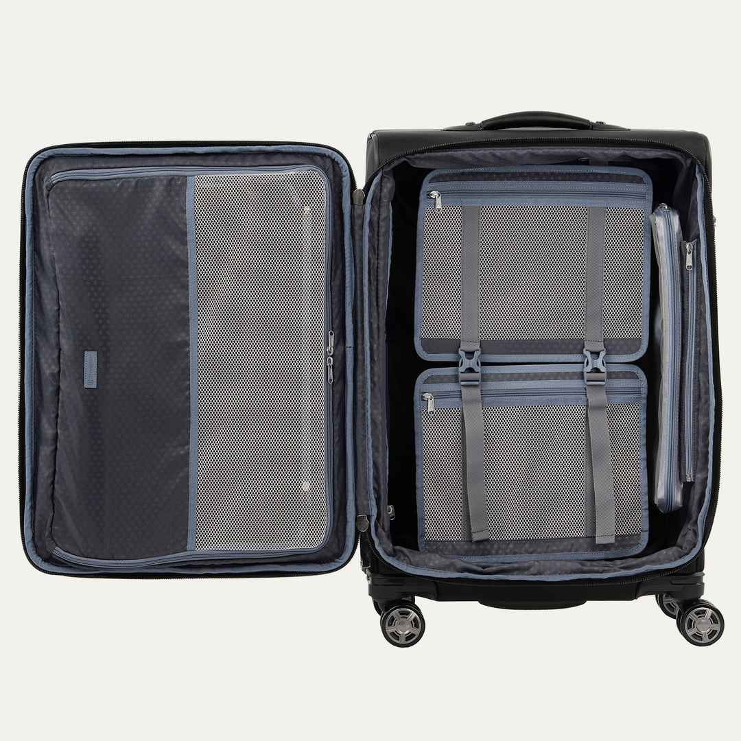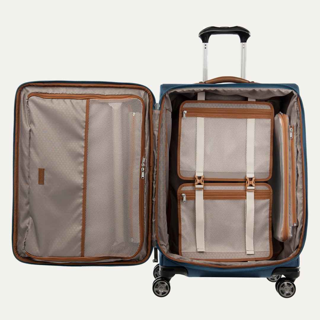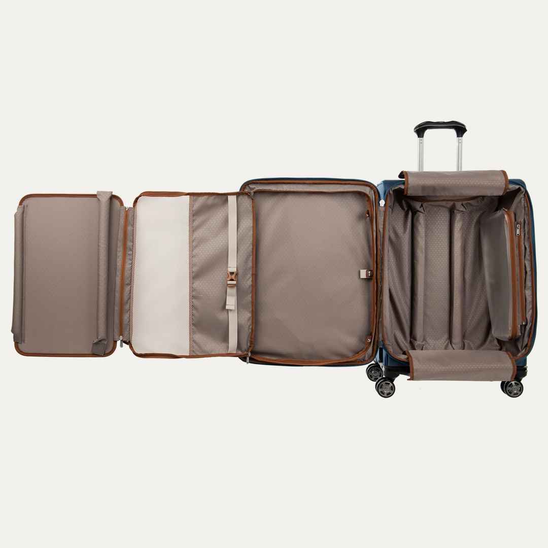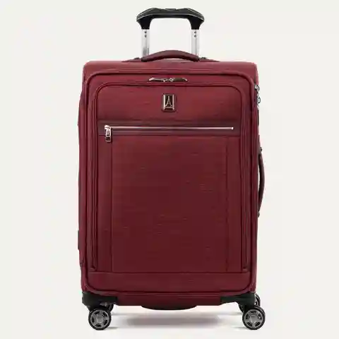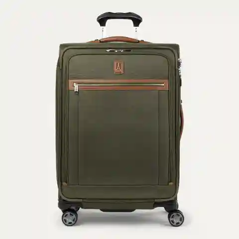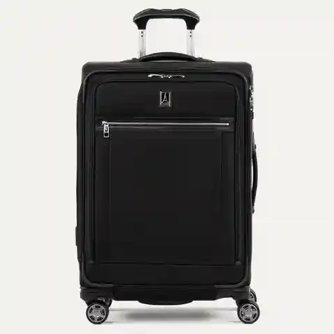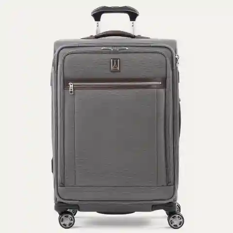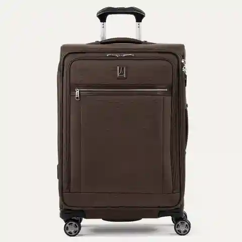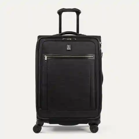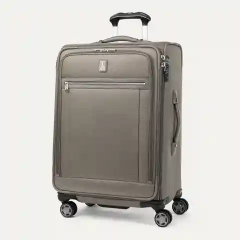 Functional, durable, and stylish, the Platinum Elite Medium Check-In Expandable Spinner is the perfect spinner wheel luggage for medium and long trips. This soft side luggage with spinner wheels has a tip-resistant expansion option that adds up to 2" more packing capacity. Built-in suiter guards aga...more
