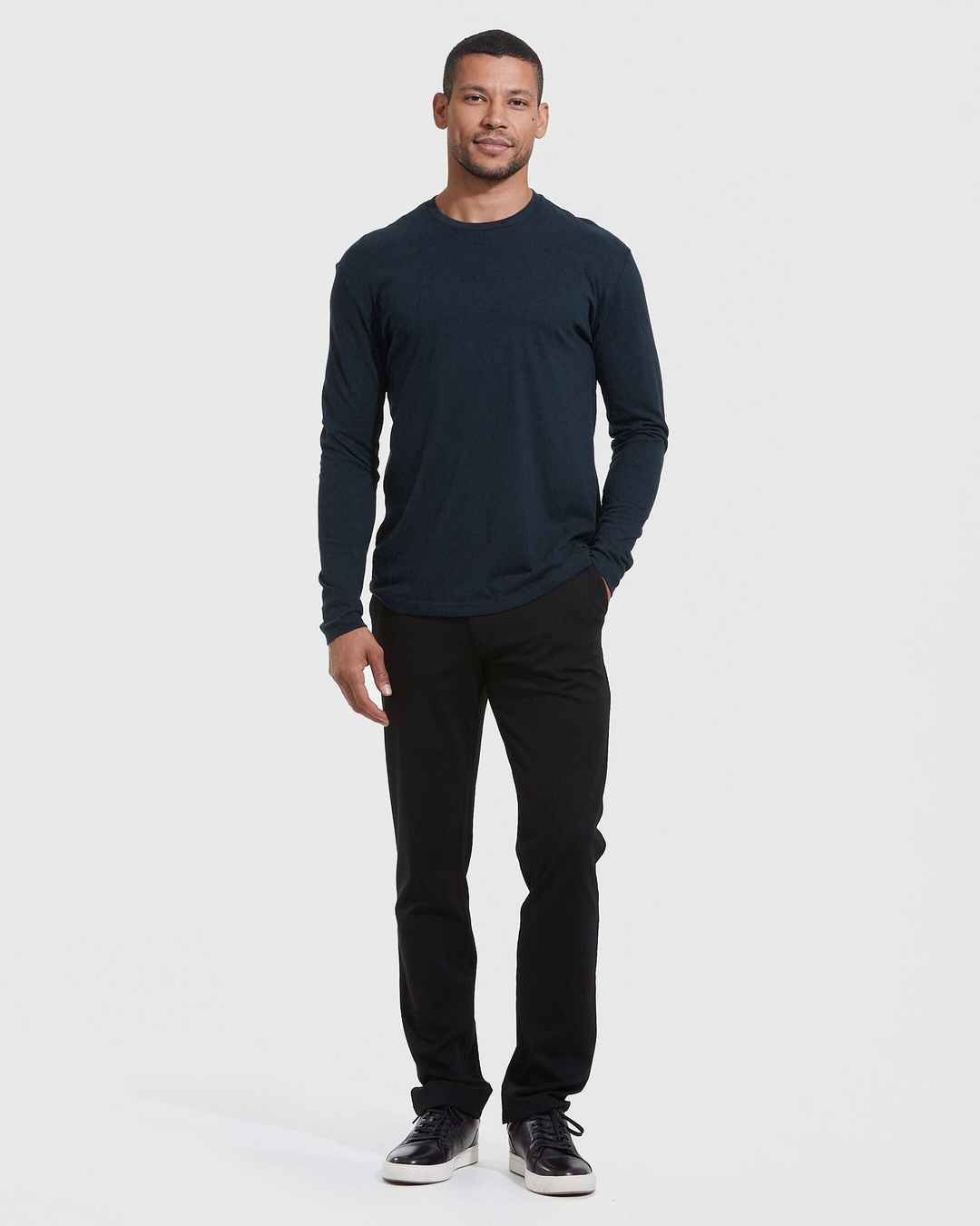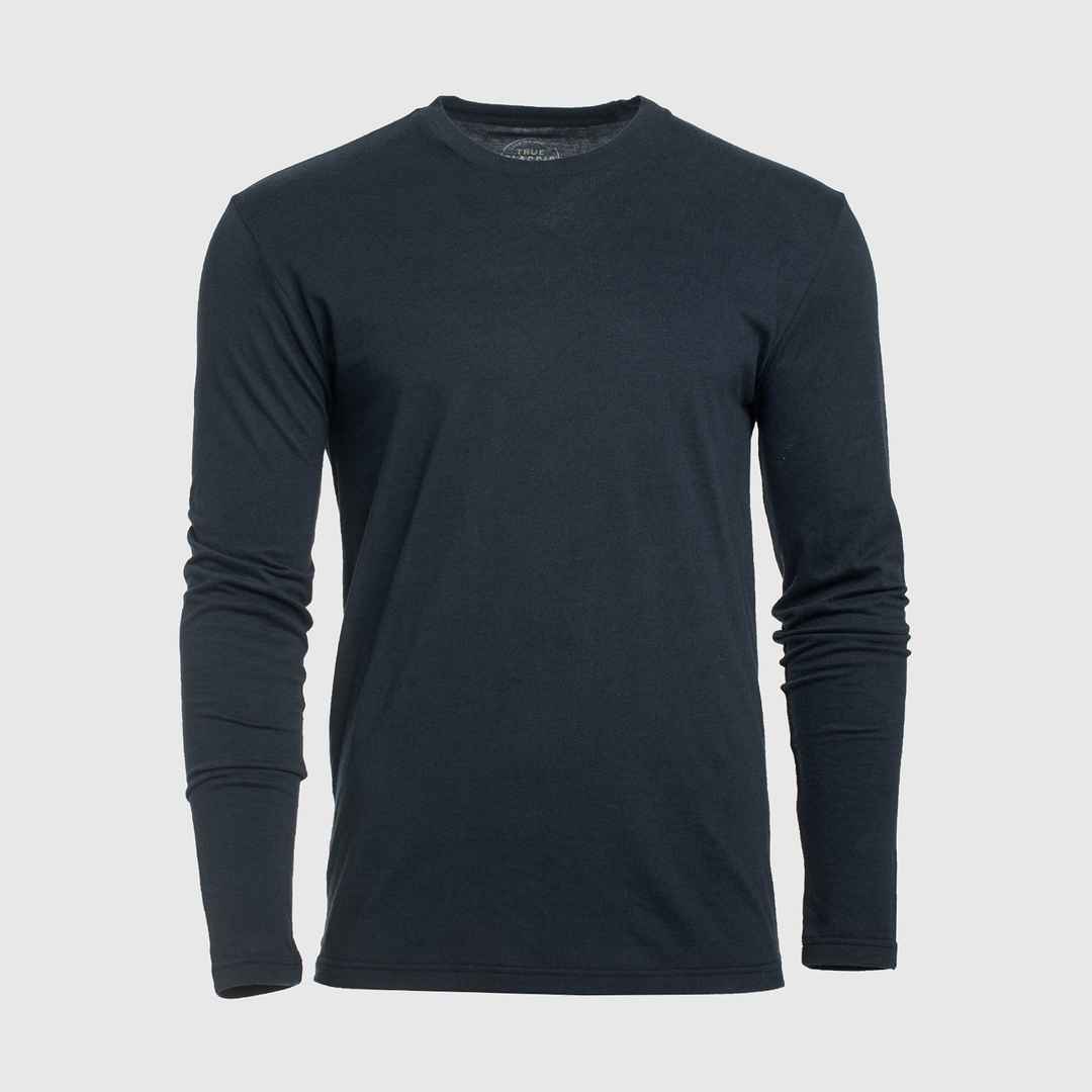 Home True Classic Tees True Classic Navy Blue Long Sleeve Crew Neck T-Shirt | Cotton Blend | Athletic Cut | Small