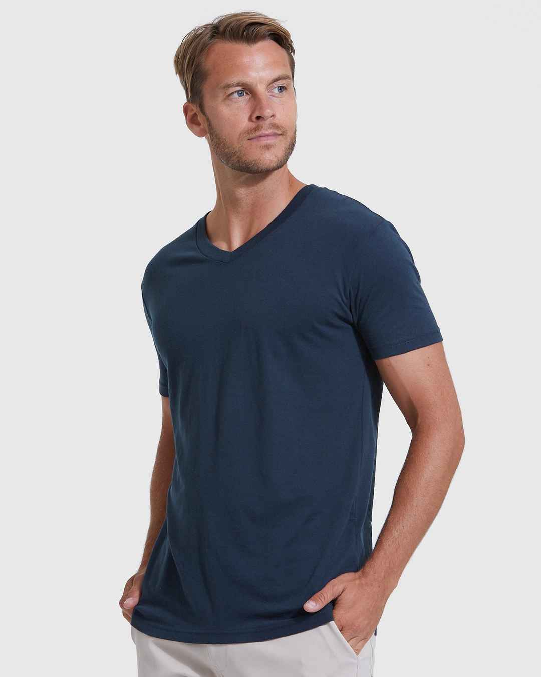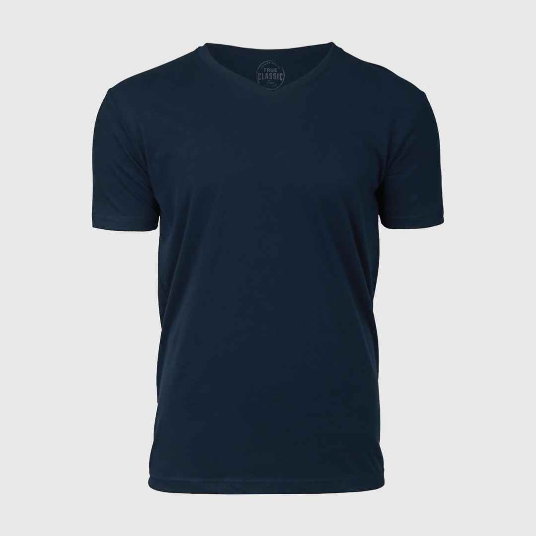 True Classic Navy Blue V-Neck T-Shirt | Cotton Blend | Athletic Cut | Small