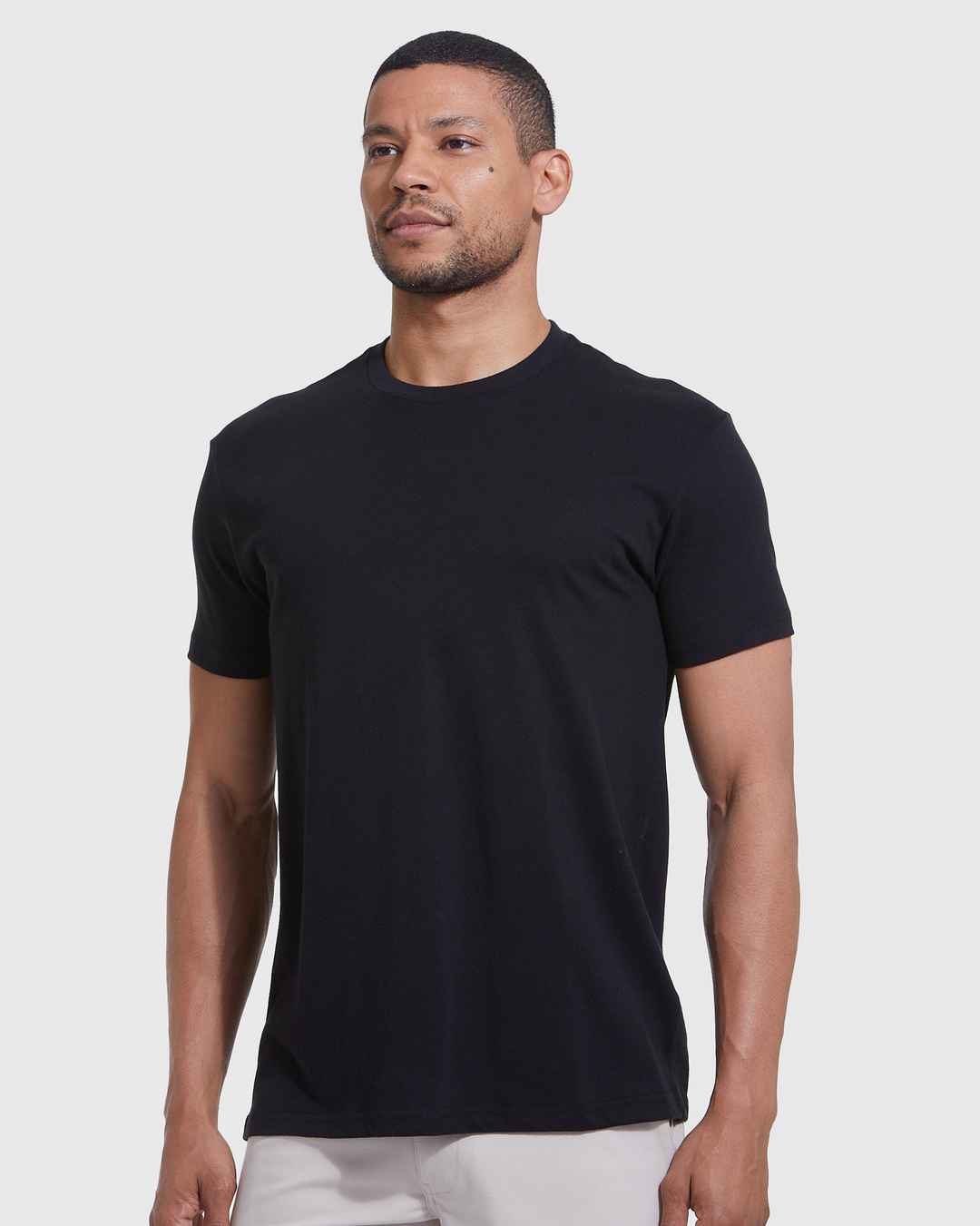 True Classic All Black Short Sleeve Crew Neck 3-Pack | Cotton Blend | Athletic Cut | Small
