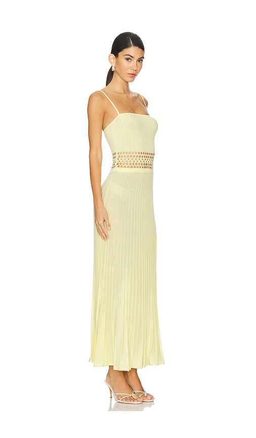 Tularosa Yokine Midi Dress in Yellow. - size L (also in M, XL) Tularosa Yokine Midi Dress in Yellow. - size L (also in M, XL) 80% lyocell 19% nylon 1% elastane. Made in China. Hand wash. Unlined. Pull-on styling. Adjustable shoulder straps. Midweight slinky knit fabric with cut-out detailing at bodi...more