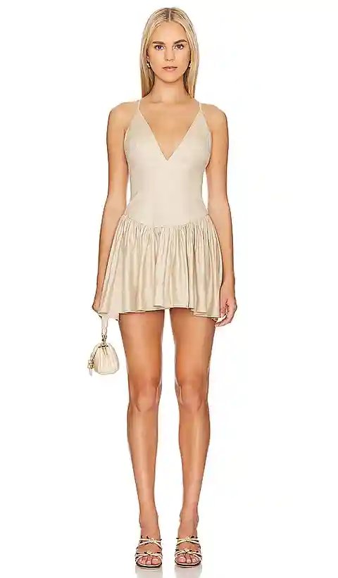 Tularosa Saylor Mini Dress in Beige. - size L (also in M, XL) Tularosa Saylor Mini Dress in Beige. - size L (also in M, XL) Self: 55% linen 45% viscose Lining: 100% viscose. Made in China. Hand wash. Fully lined. Hidden back zipper closure. Adjustable criss-cross shoulder straps. Linen fabric. TULA-...more