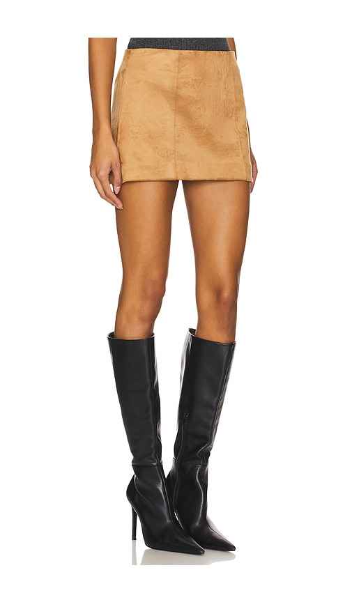 Tularosa Ginny Faux Suede Mini Skirt in Tan. - size L (also in M, S)